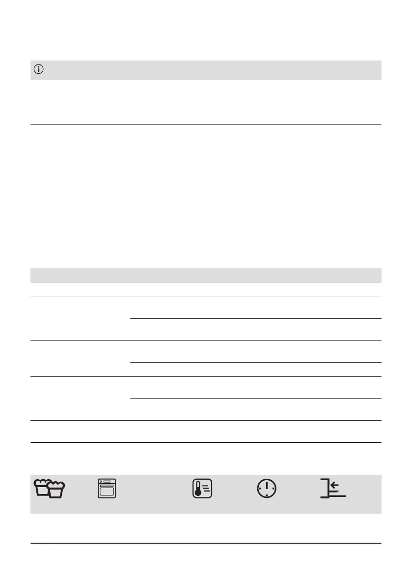 Din ovn kan have andre bage-/stegeegenskaber end den ovn, du havde før. Tabellerne herunder viser anbefale‐