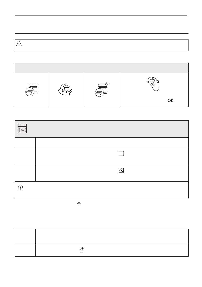 The oven can emit an odour and smoke during preheating. Make sure that the room is ventila‐
