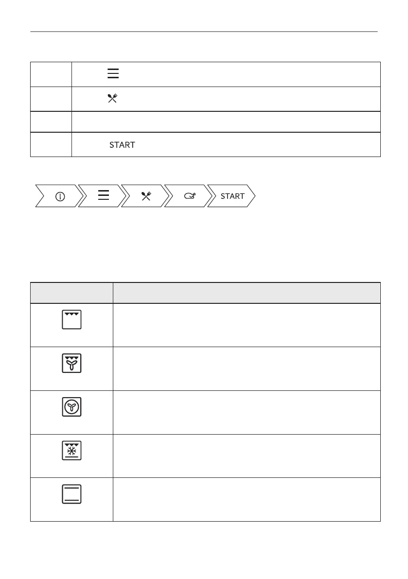 Bagning på op til tre ovnriller samtidig og til tørring af fødevarer. Indstil