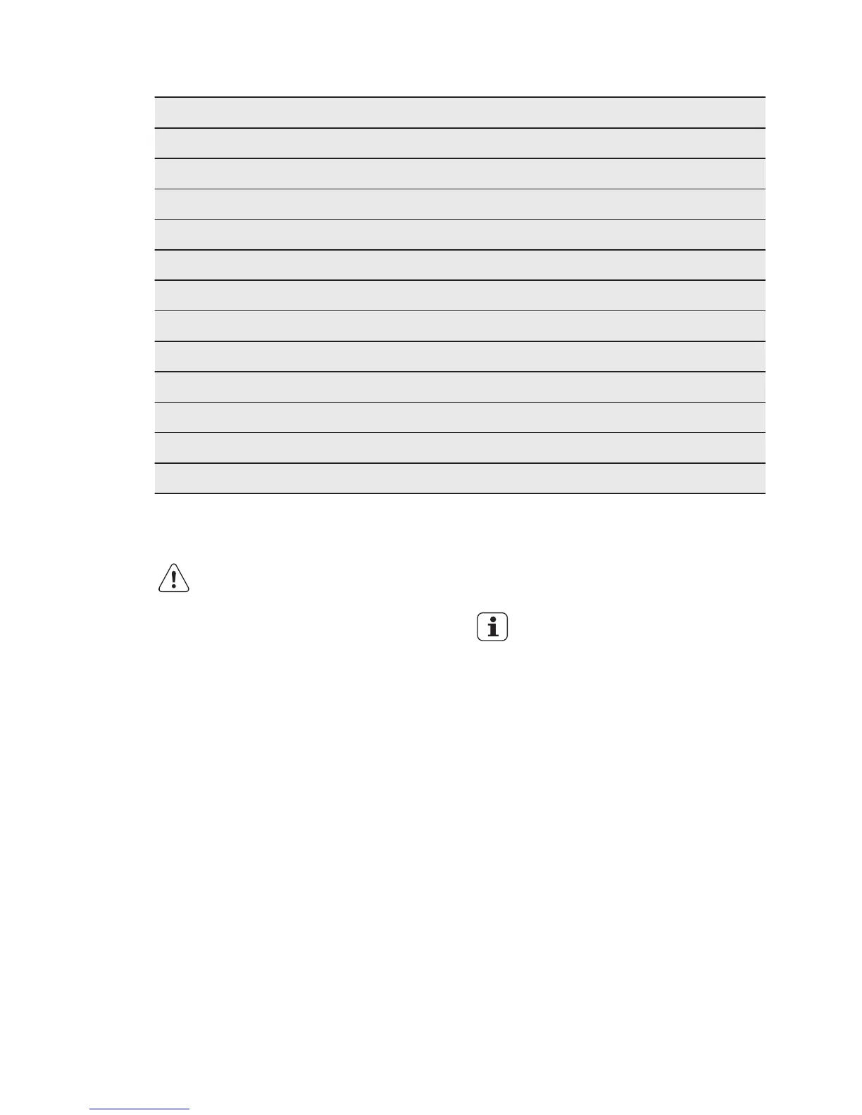 9.13 Core temperature sensor table