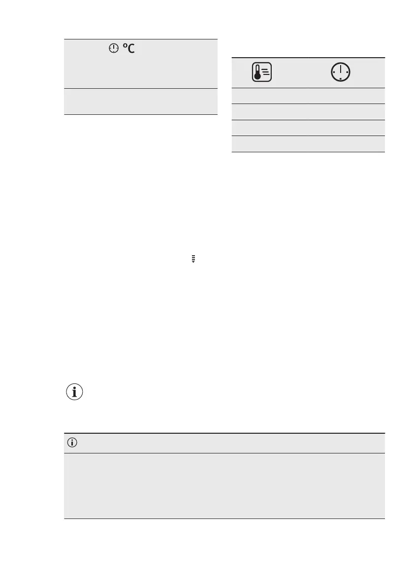 The temperature and cooking times in the tables are guidelines only. They depend on the