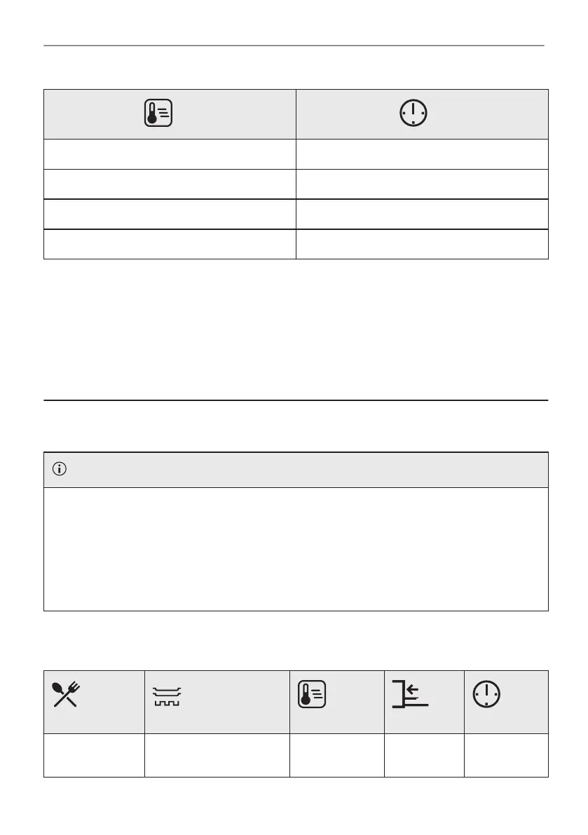 The temperature and cooking times in the tables are guidelines only. They depend on the recipes