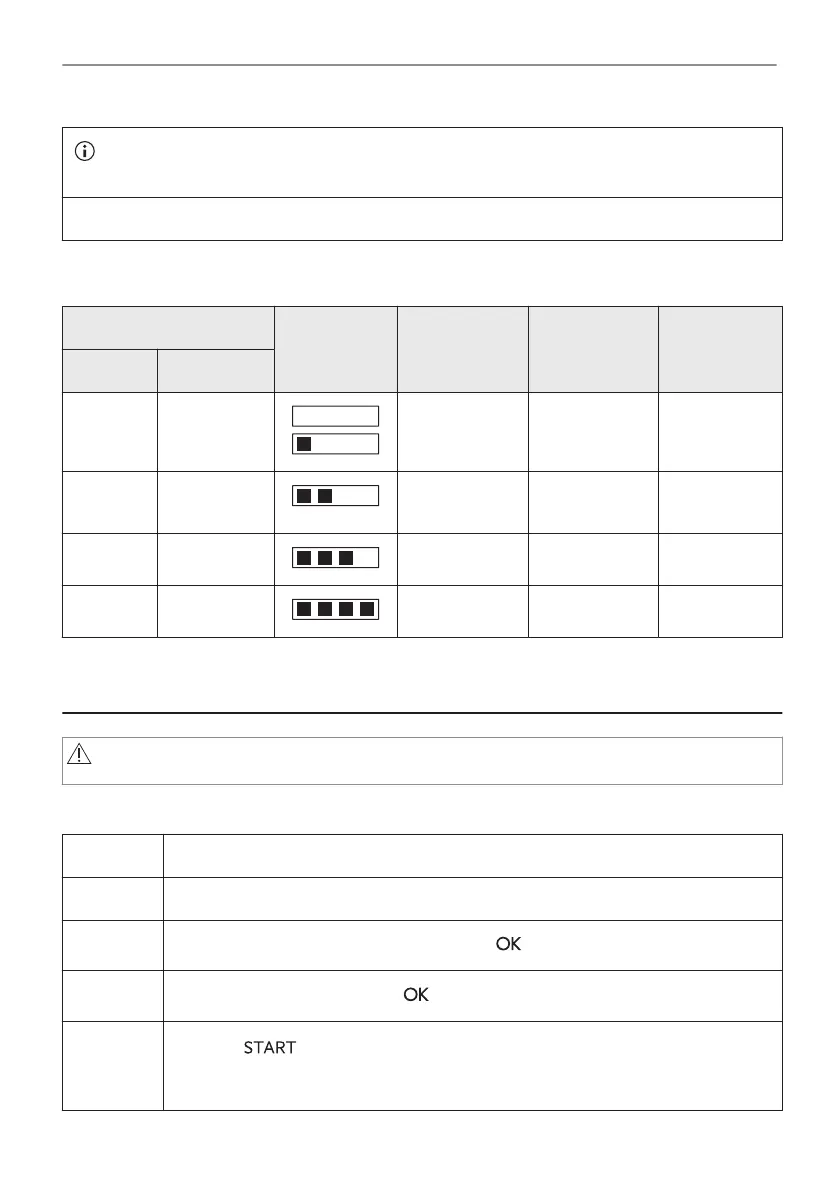 de waterclassificatie. Pas het waterhardheidsniveau aan volgens de tabel.