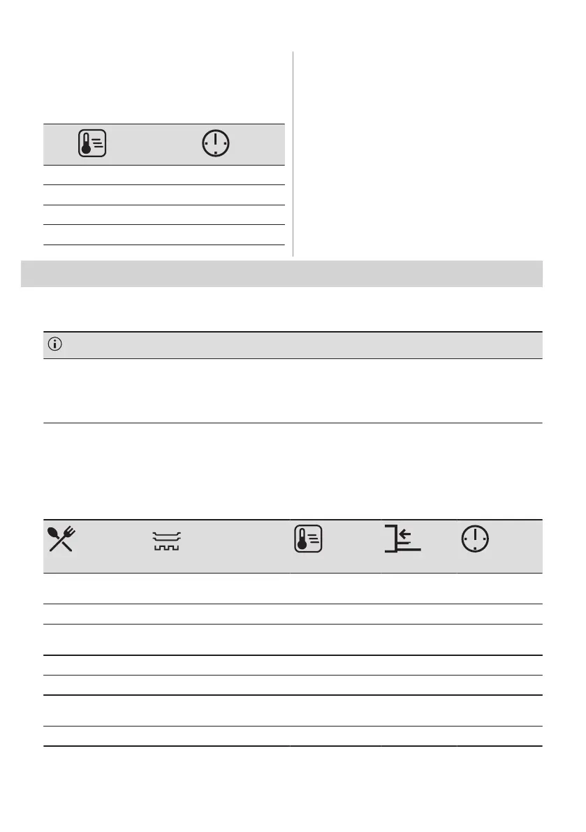 De temperatuur en kooktijden in de tabellen zijn slechts als richtlijn bedoeld. Ze zijn afhankelijk van het recept, de