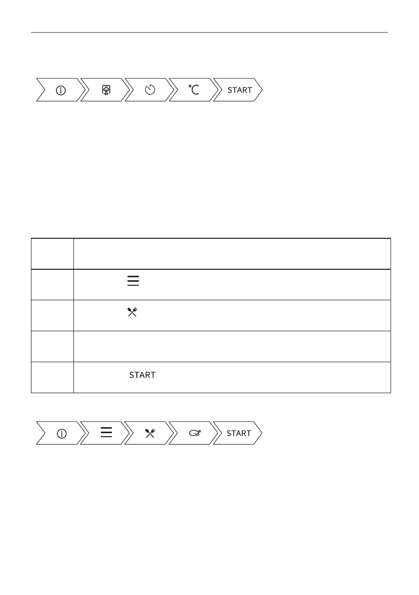 Jedes Gericht in diesem Untermenü hat eine empfohlene Funktion und Temperatur. Sie