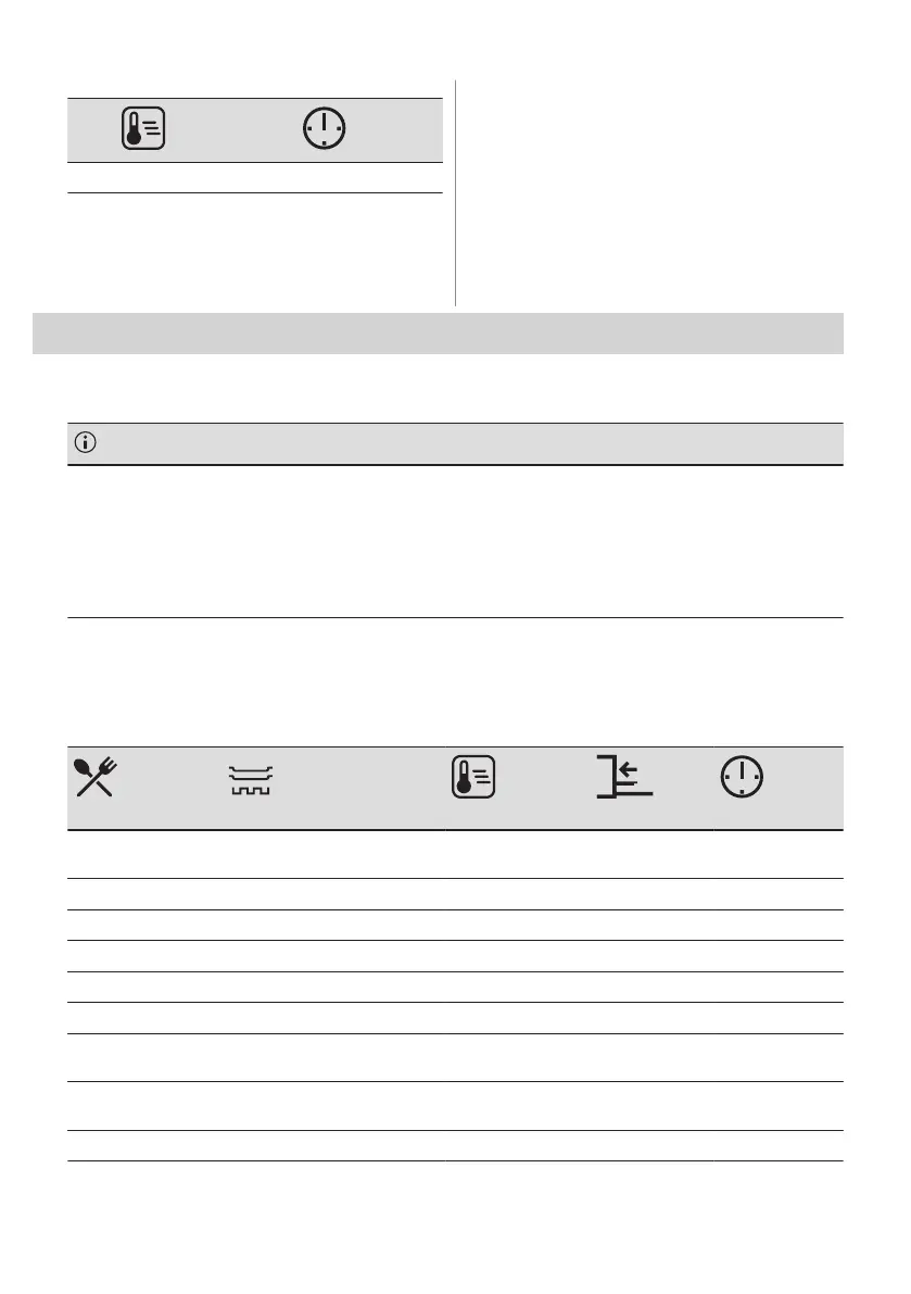 fohlenen Einstellungen für Temperatur, Gardauer und Einschubebene für die einzelnen Speisen.