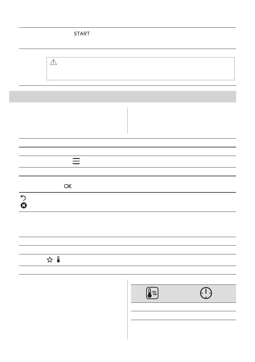 sütőfunkciót, a főzés időtartamát, a