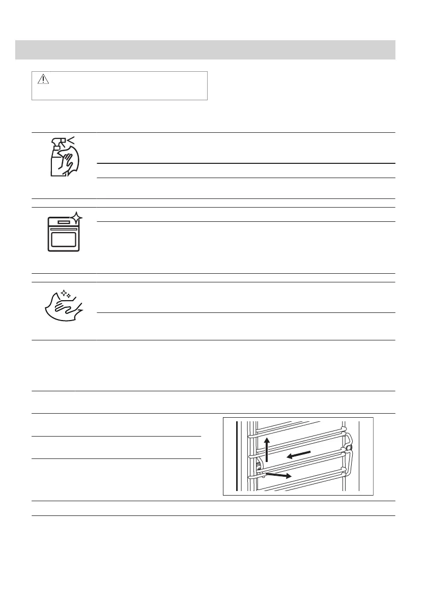 Išimkite lentynų atramas ir išvalykite orkaitę.