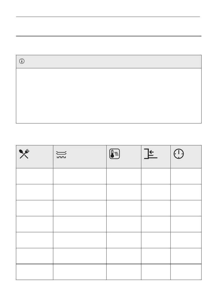 ten enthalten die empfohlenen Einstellungen für Temperatur, Gardauer und Einschubebene für