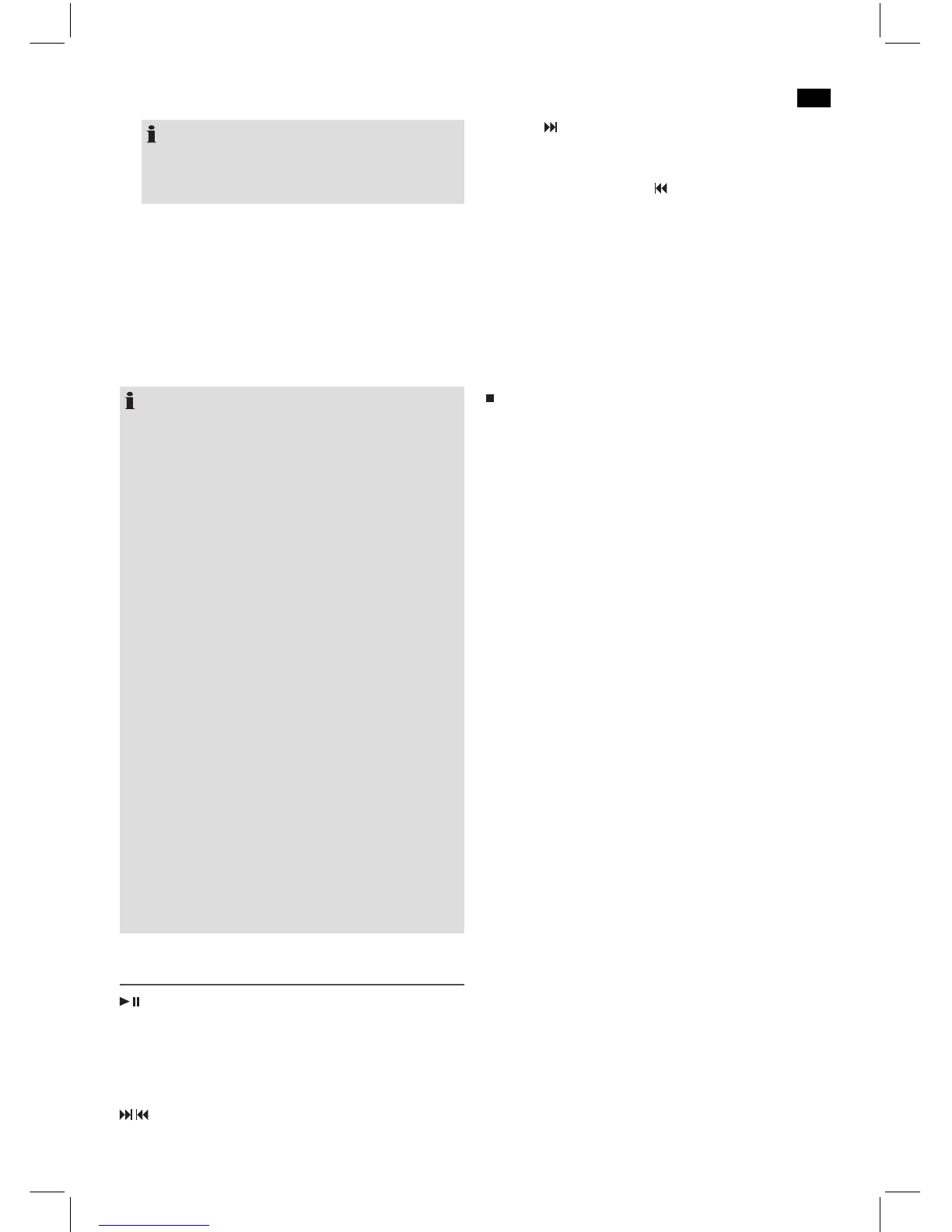 Appuyez 1 fois = Reprend la lecture de la piste en cours,