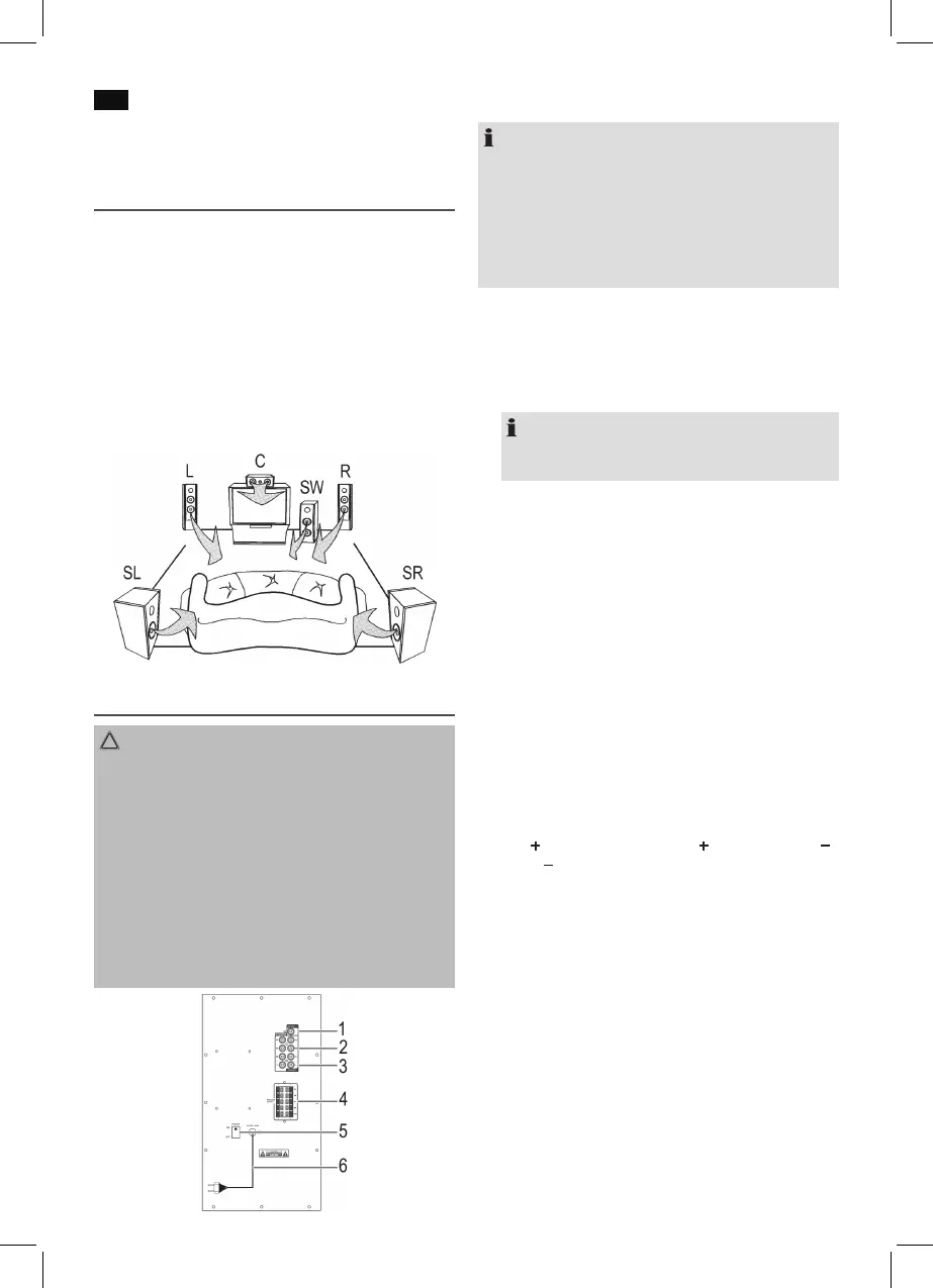 • Послеполногоподключениявсехгромкоговорителей