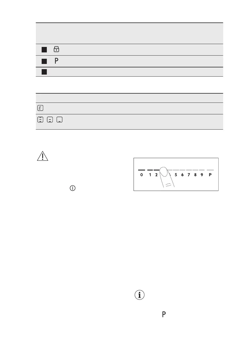 - Hob control bar To set a heat setting.