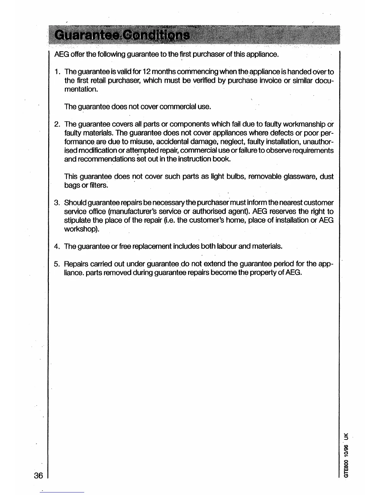 AEG COMPETENCE 5151 B - Guarantee Conditions
