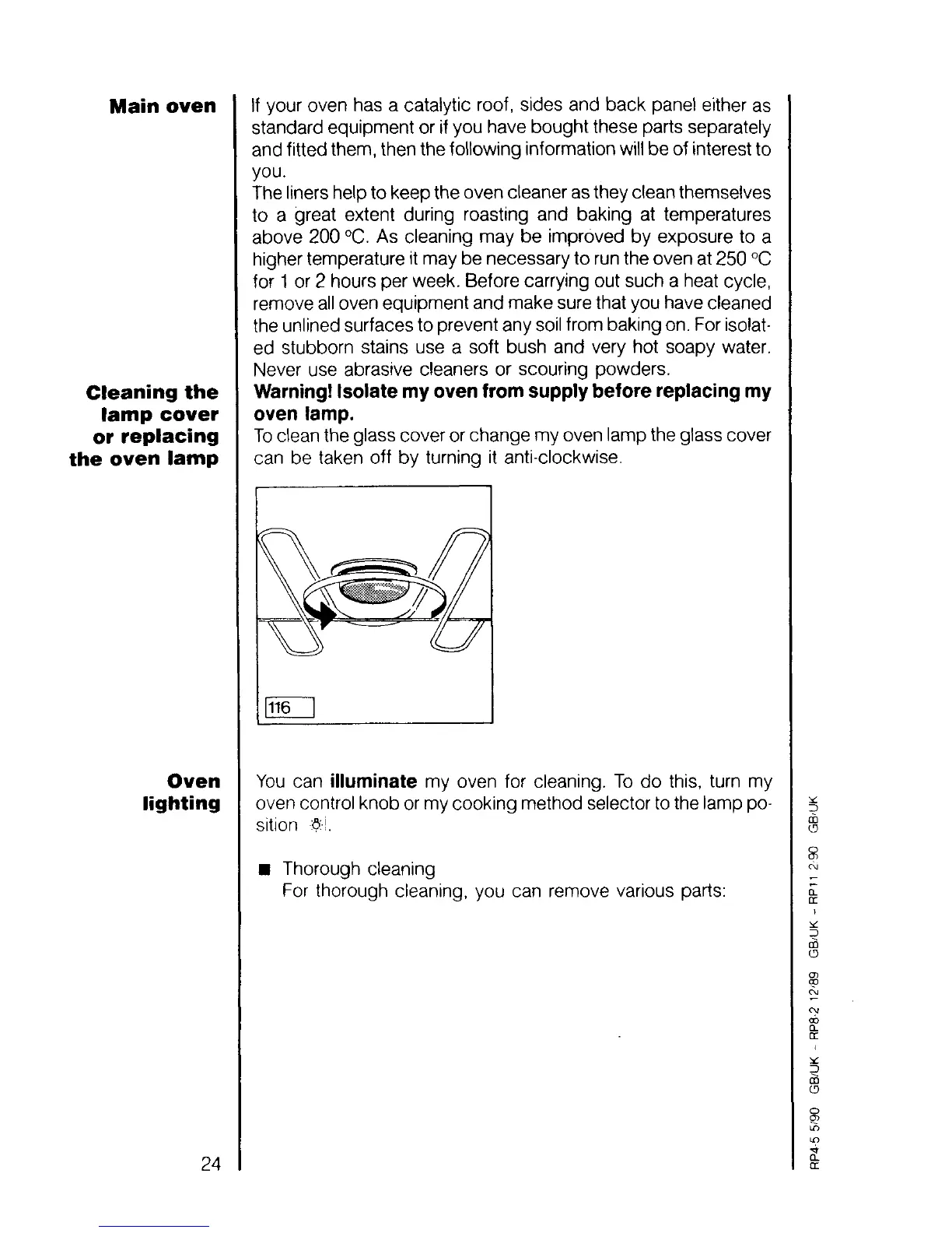 AEG Competence 520 B - Main Oven; Cleaning the Lamp Cover or Replacing the Oven Lamp; Oven Lighting
