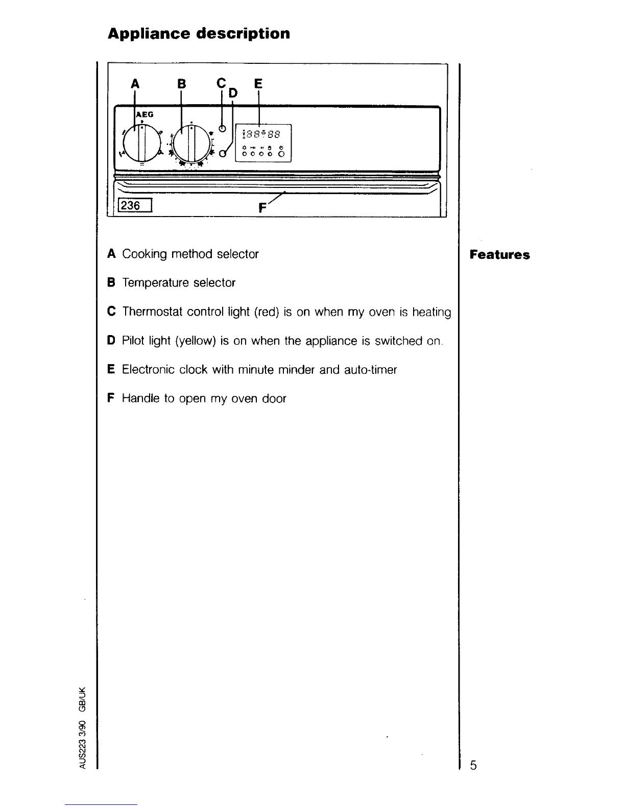 AEG Competence 520 B - Appliance Description; Features