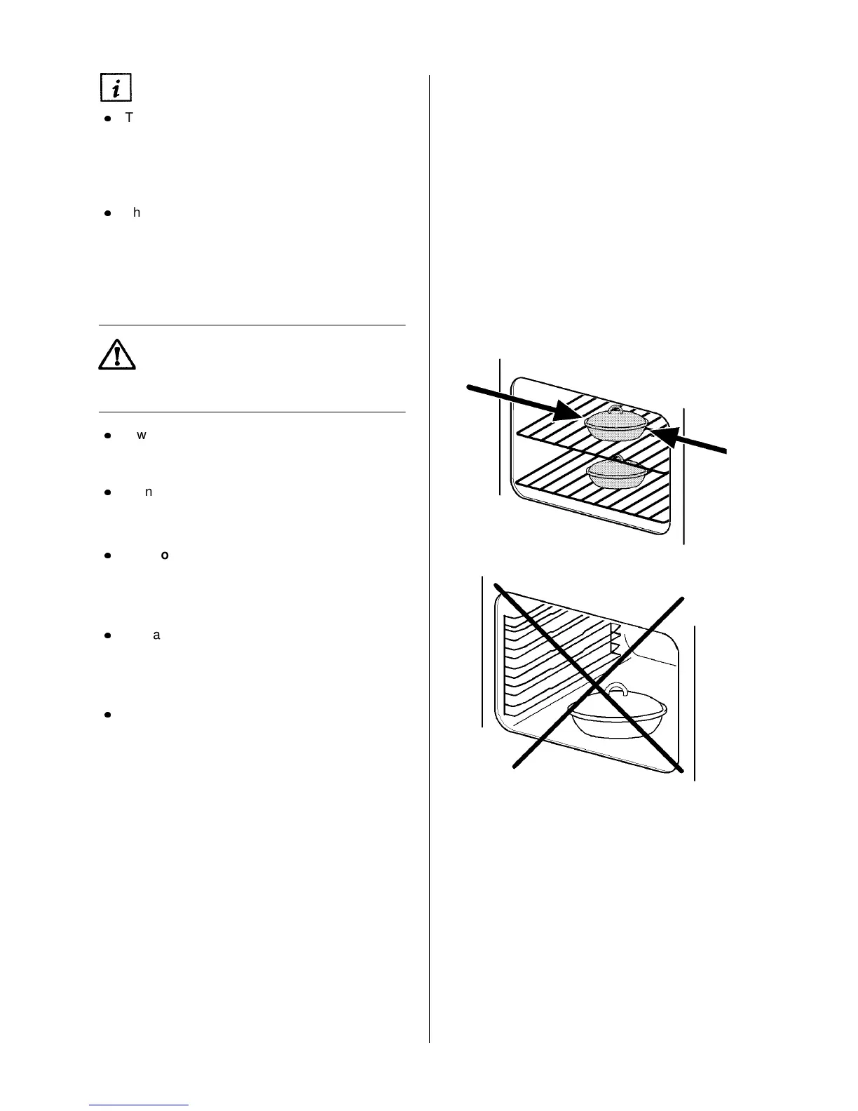 Do not place dishes, tins or baking trays
