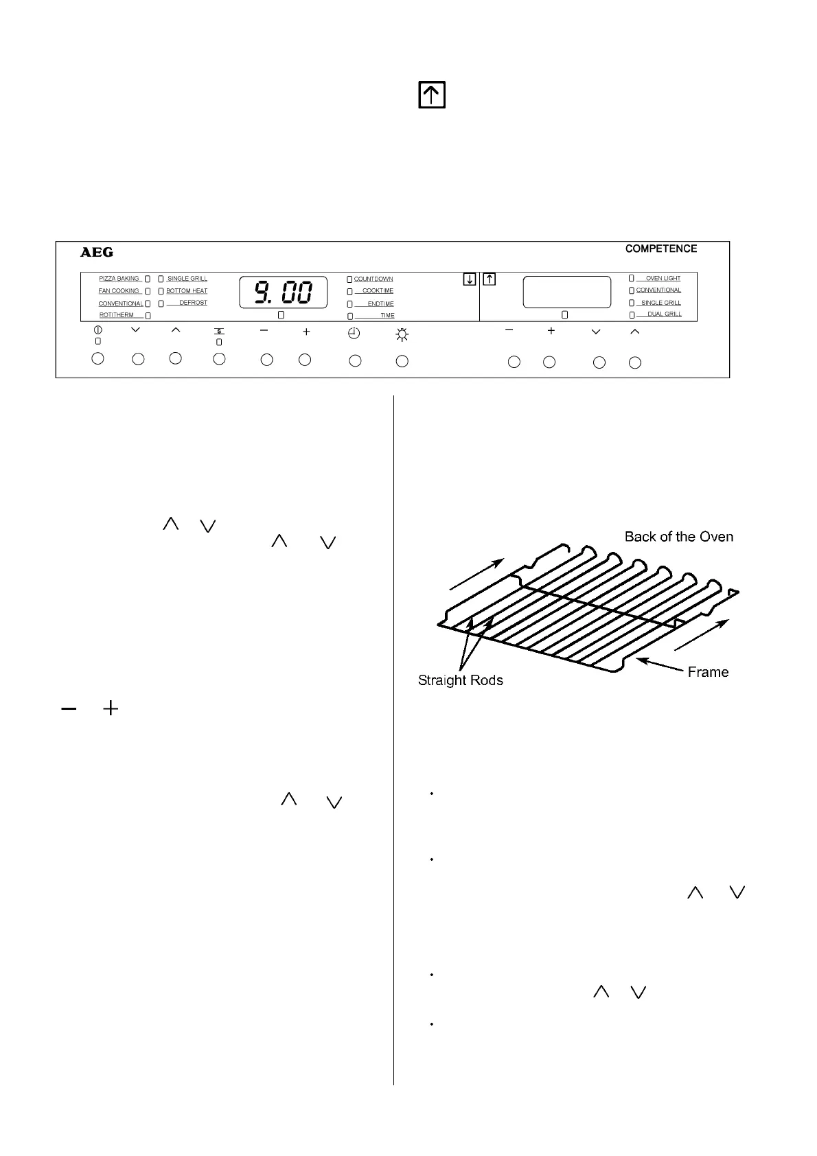 oven function. Each time button or is
