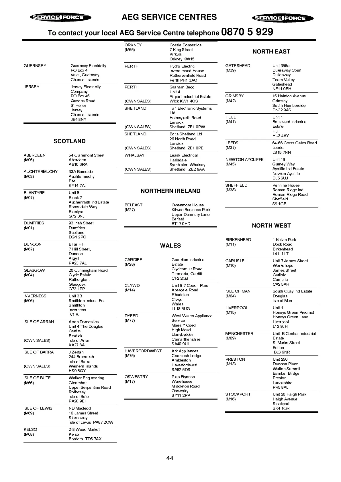 AEG SERVICE CENTRES