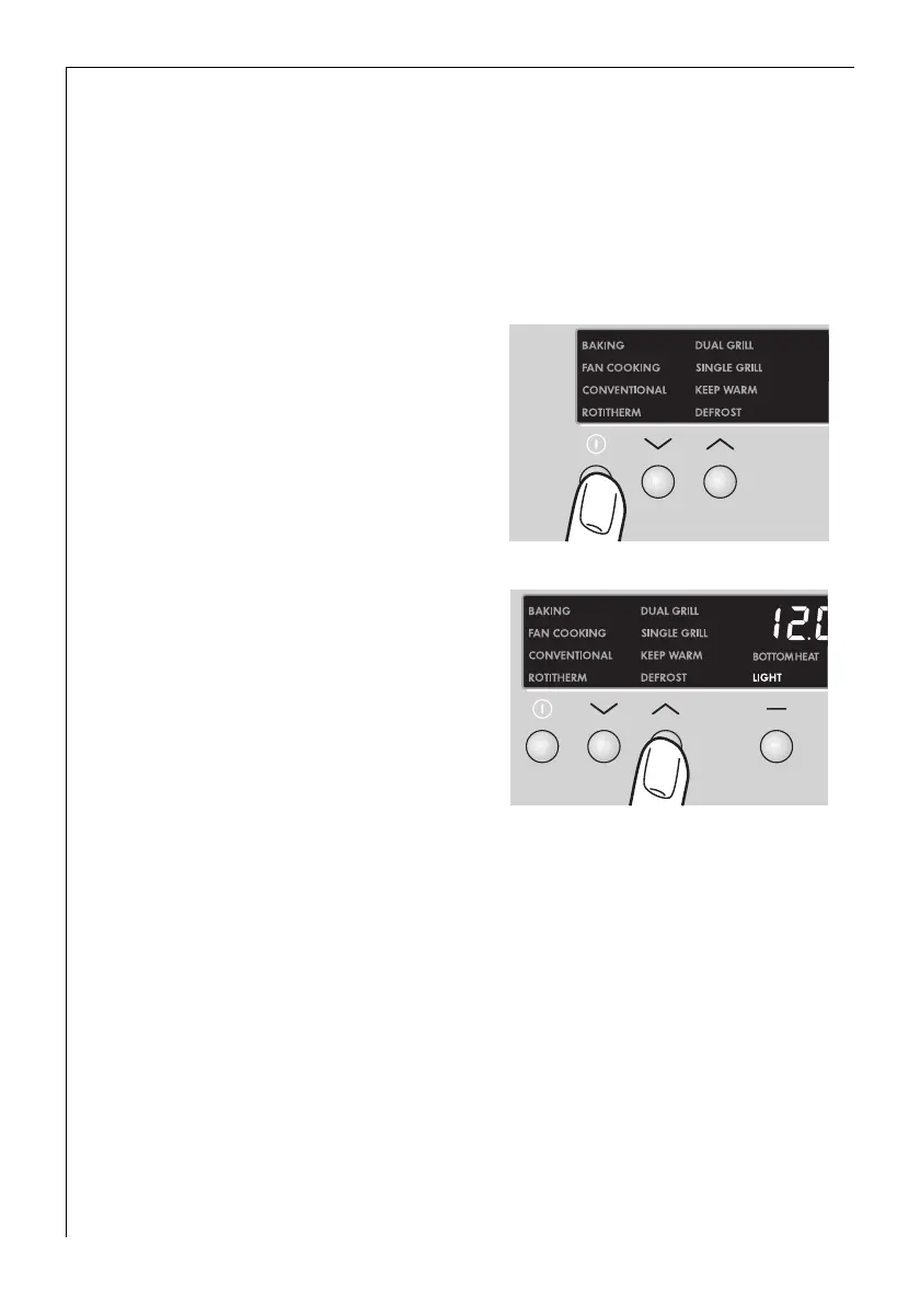 7. After cleaning switch off the oven lighting using selection button Y
