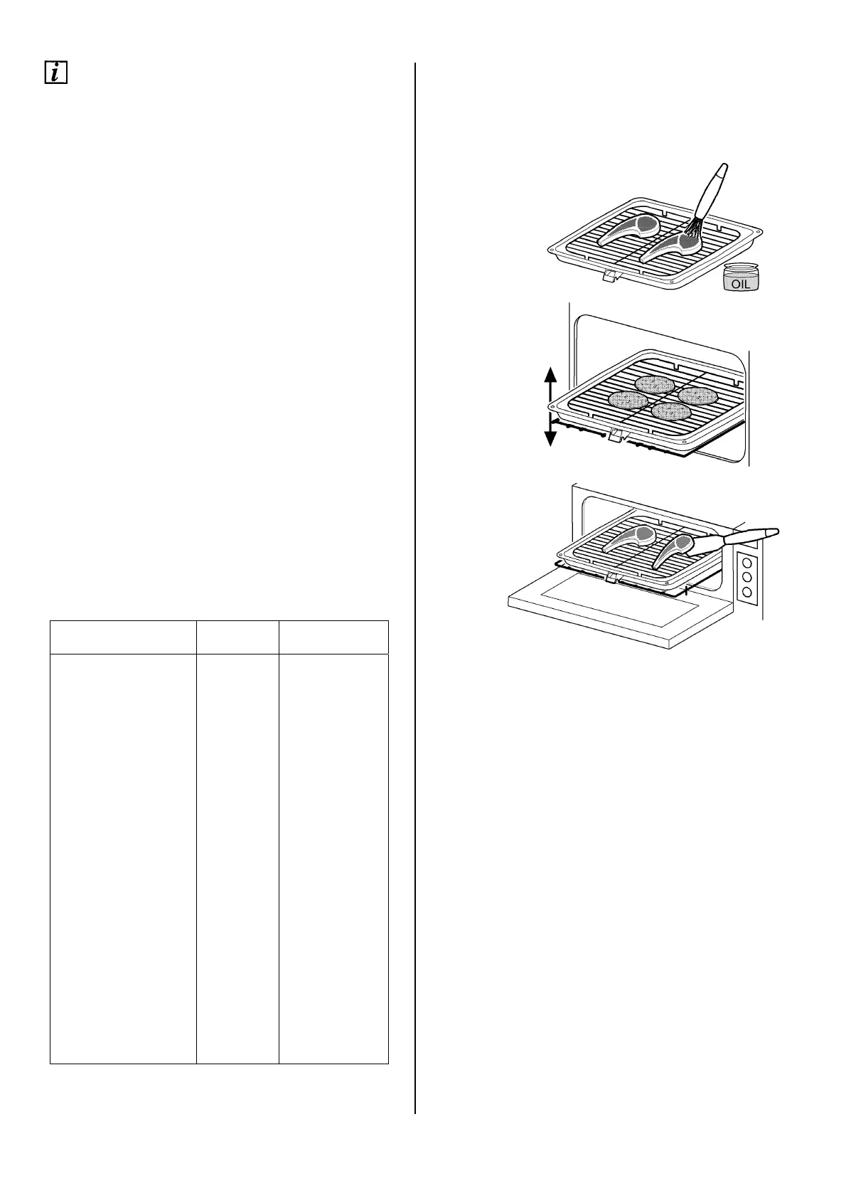 · When using the centre section grill, ensure food