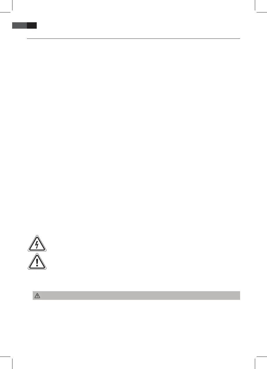 • Never open the enclosure of the device. Improper repairs may cause signicant hazards to the user. In the event that