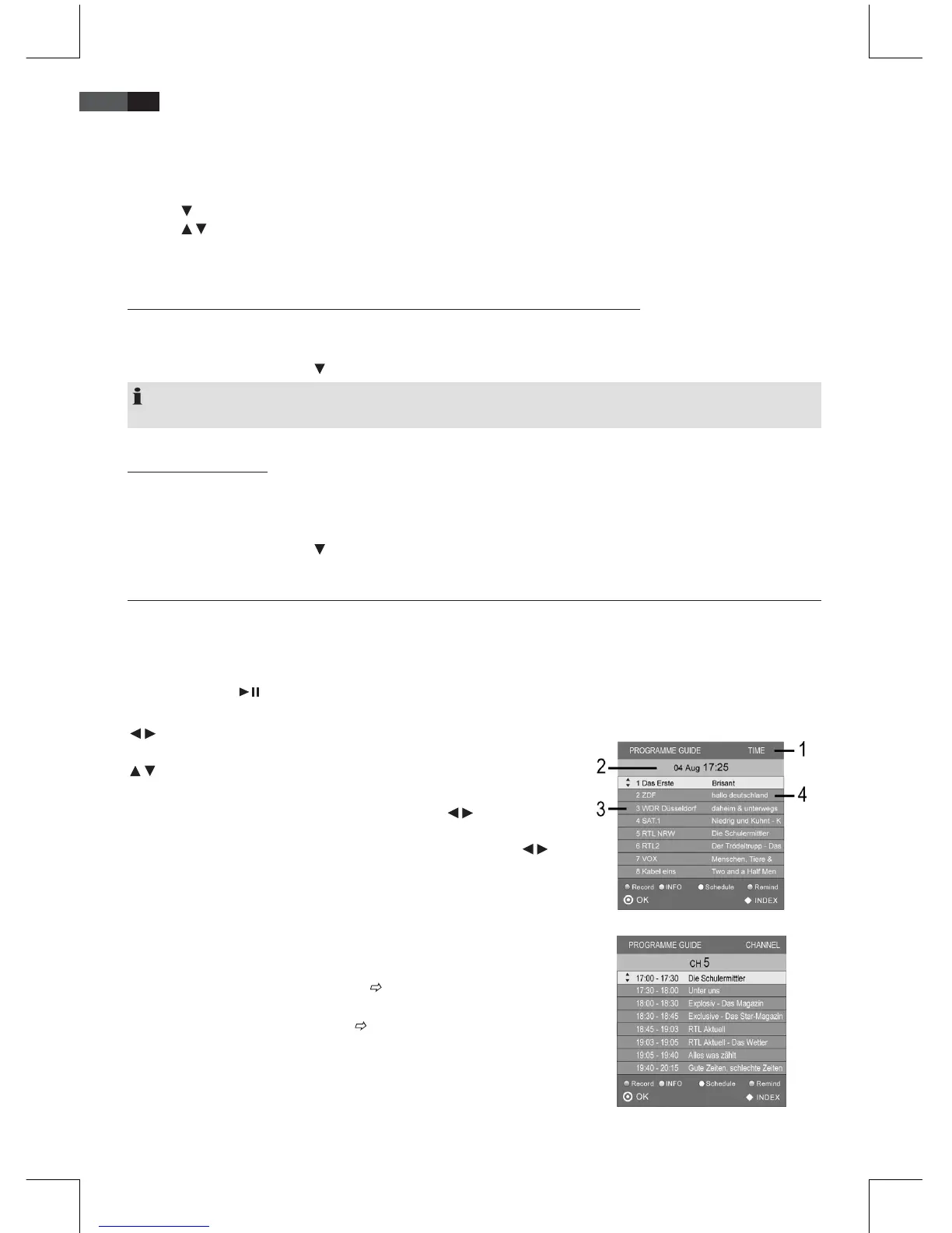 INDEX: Go to channel/time overview (1). Press