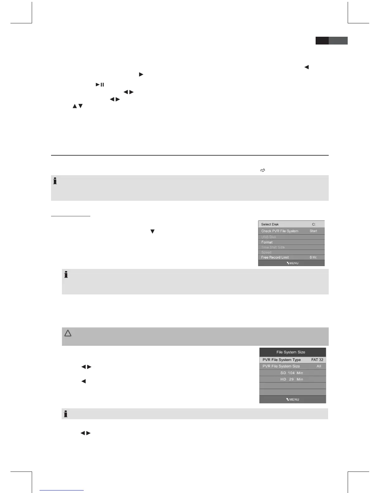 Connected PVR media must be formatted! The device writes specic les to the disk.