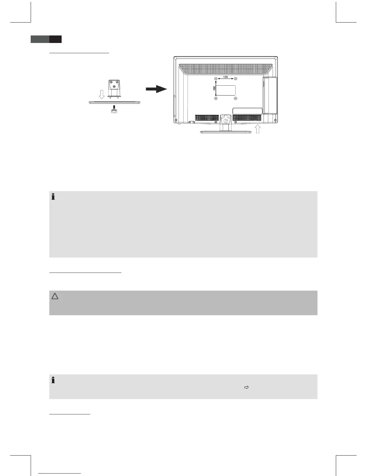 • Bei einer Wandmontage entfällt die Montage des Standfußes.