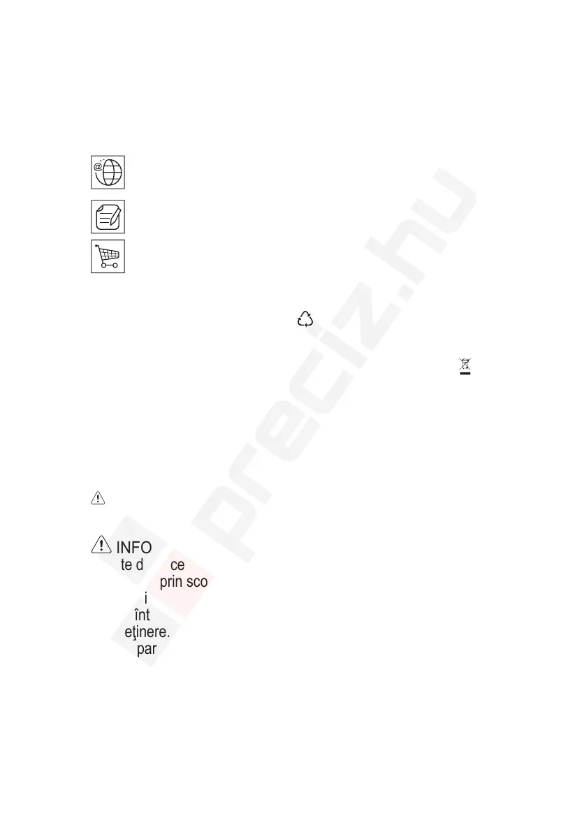 Reciclaţi materialele marcate cu simbolul . Pentru a recicla ambalajele, acestea trebuie