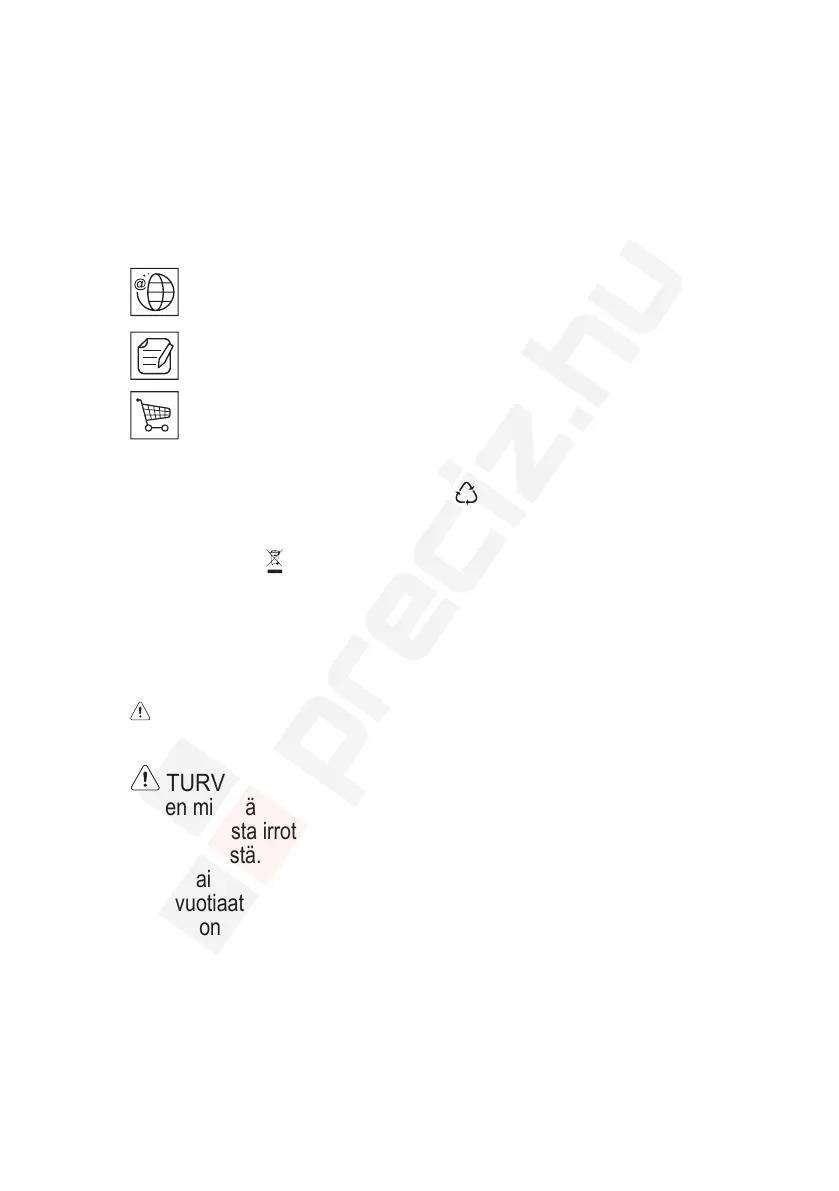 Kierrätä materiaalit, jotka on merkitty merkillä . Kierrätä pakkaus laittamalla se