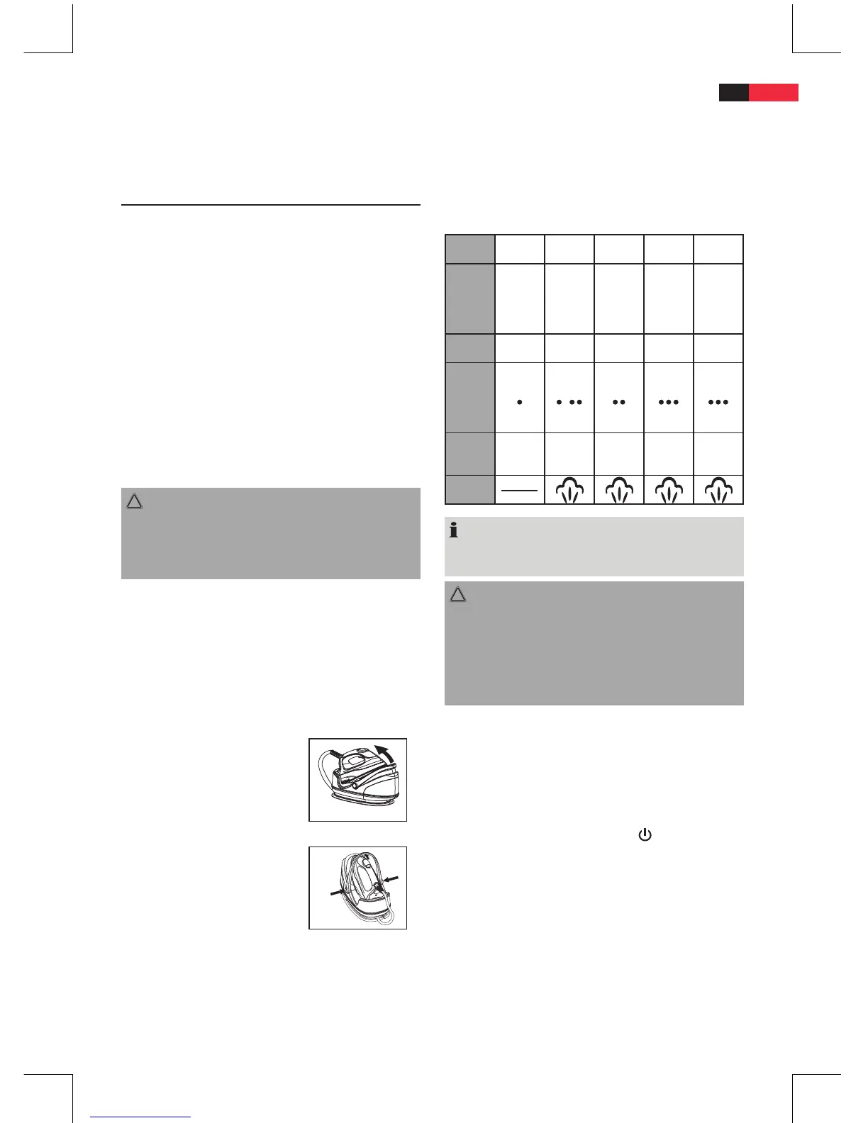 • A vasalás folytatásához állítsa vissza a kívánt hőmérséklet