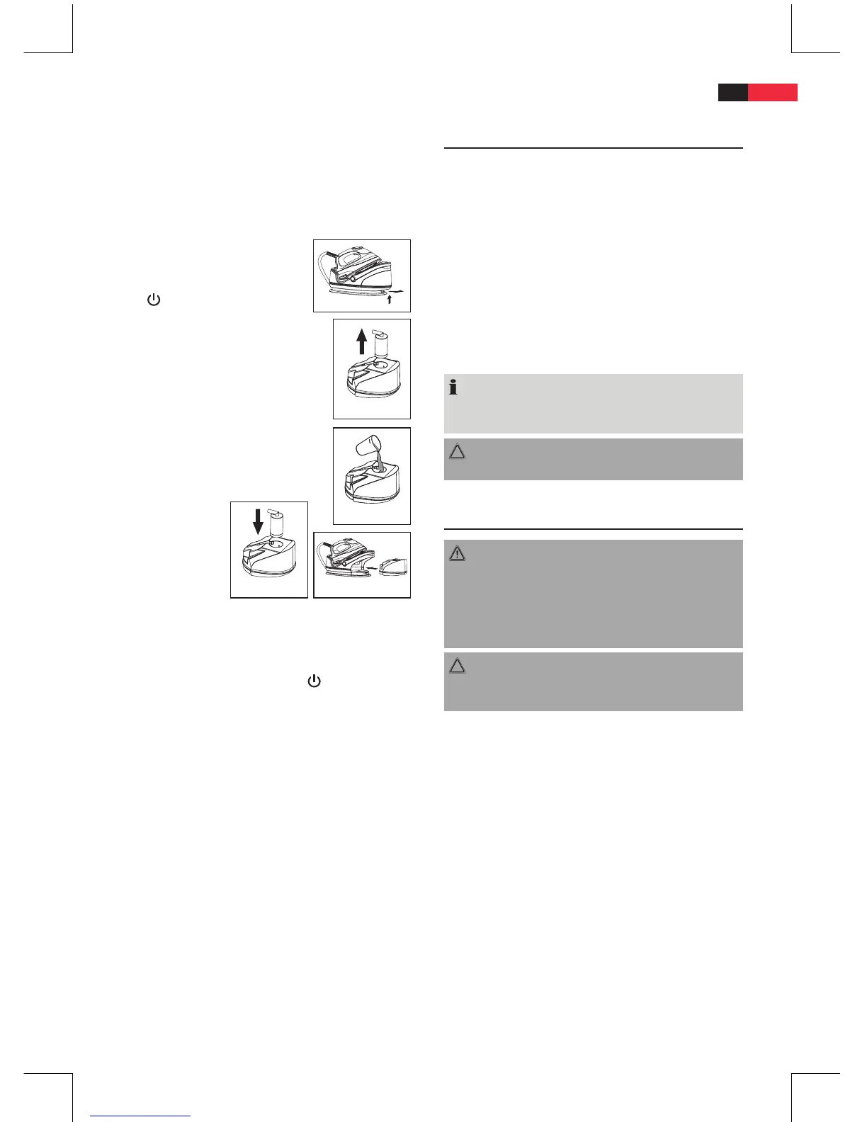 • Ürítse ki a víztartályt, ha a vasalóállomás hosszabb ideig