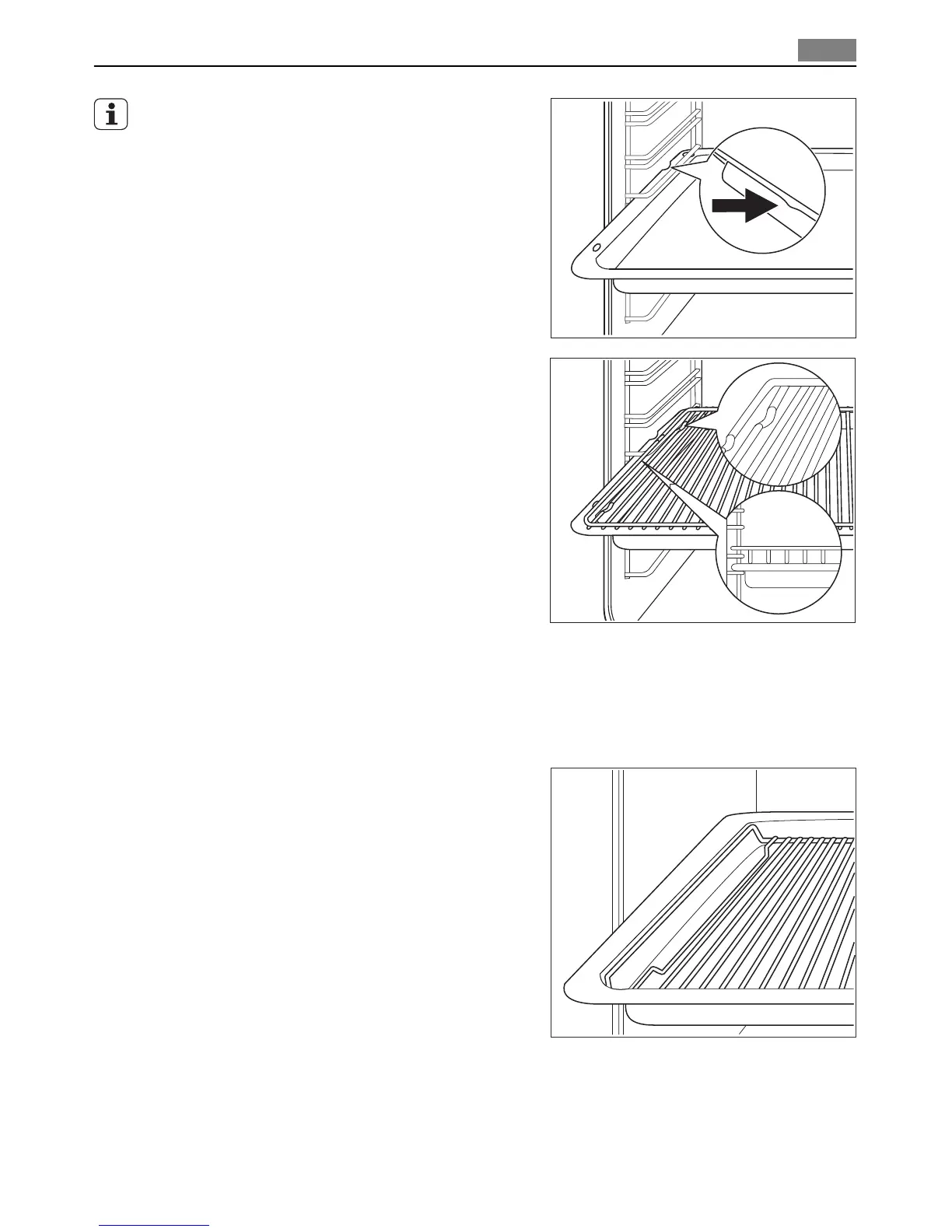 Inserting the oven shelf and deep roasting pan
