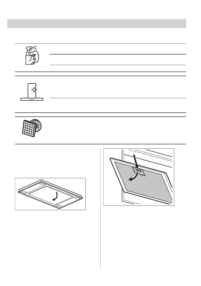 curățarea filtrului de grăsime. Filtrul de cărbune este lavabil. Curățați sau regenerați filtrul