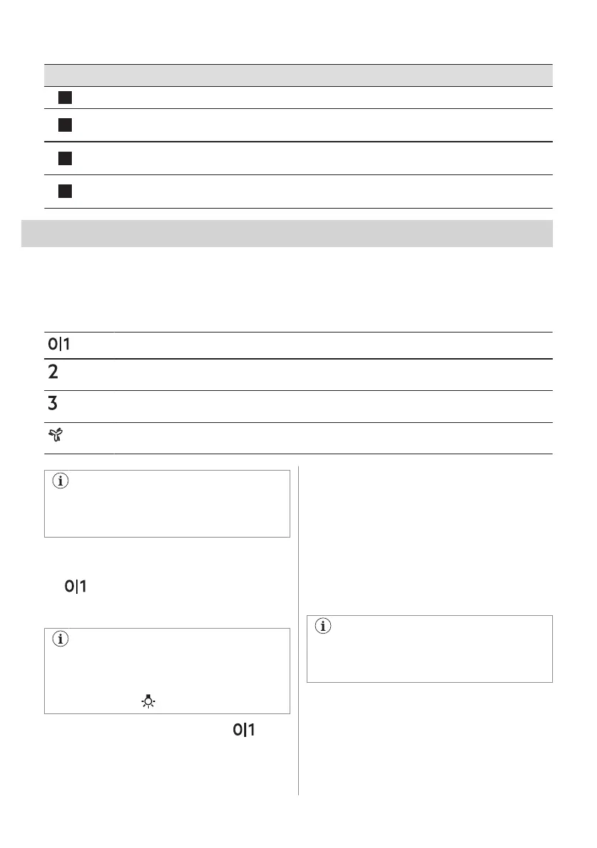 Hob²Hood Davlumbazın ocak üzerinden kontrol edildiği fonksiyona ait gösterge.