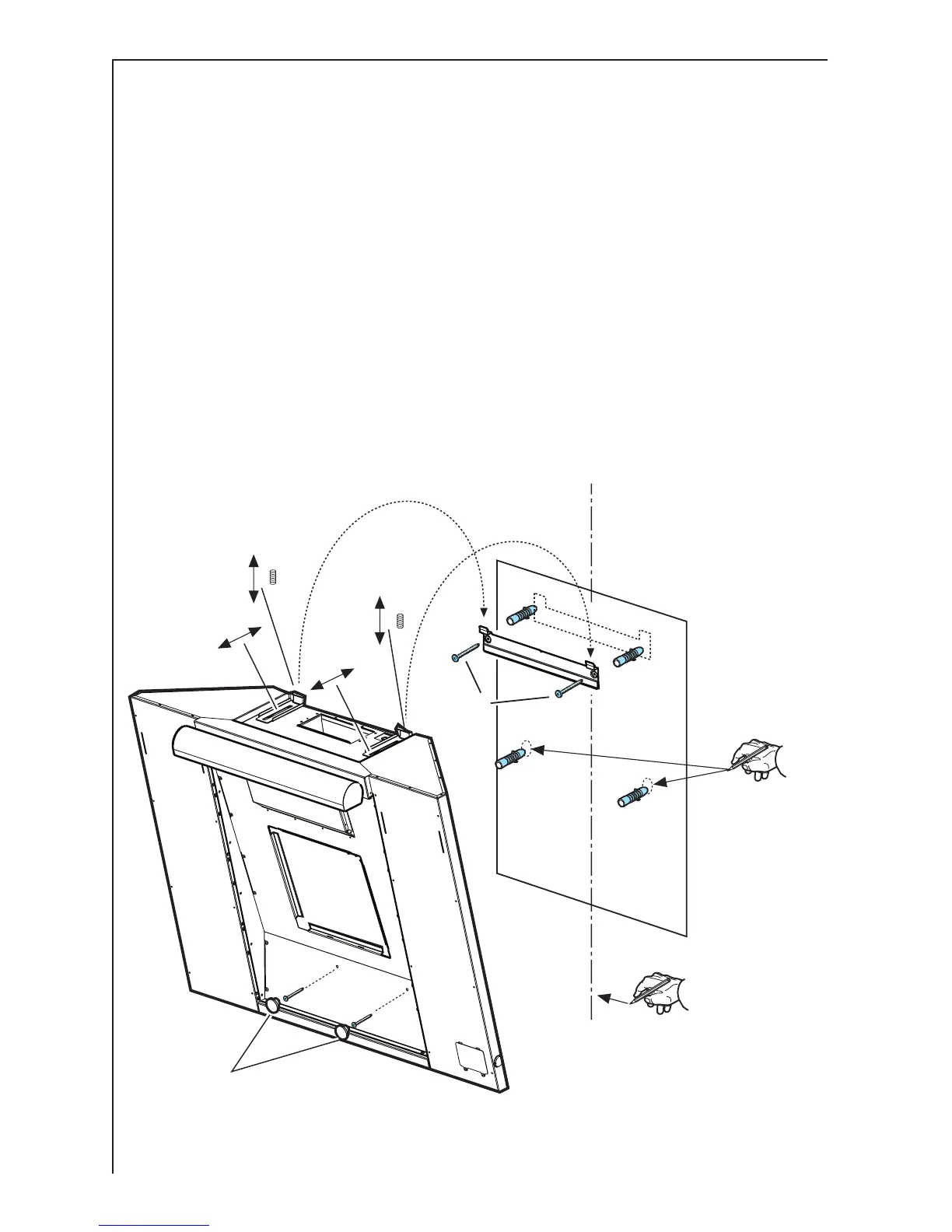 • Twee gaten Ø 8 mm boren en de montagebeugel met pluggen en