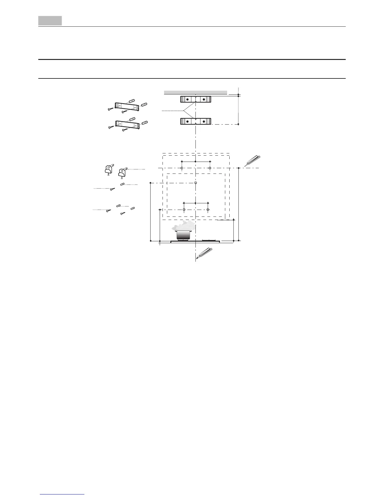conduit supérieur fourni avec la hotte), en alignant le centre de l’équerre (entailles) avec la ligne verti-