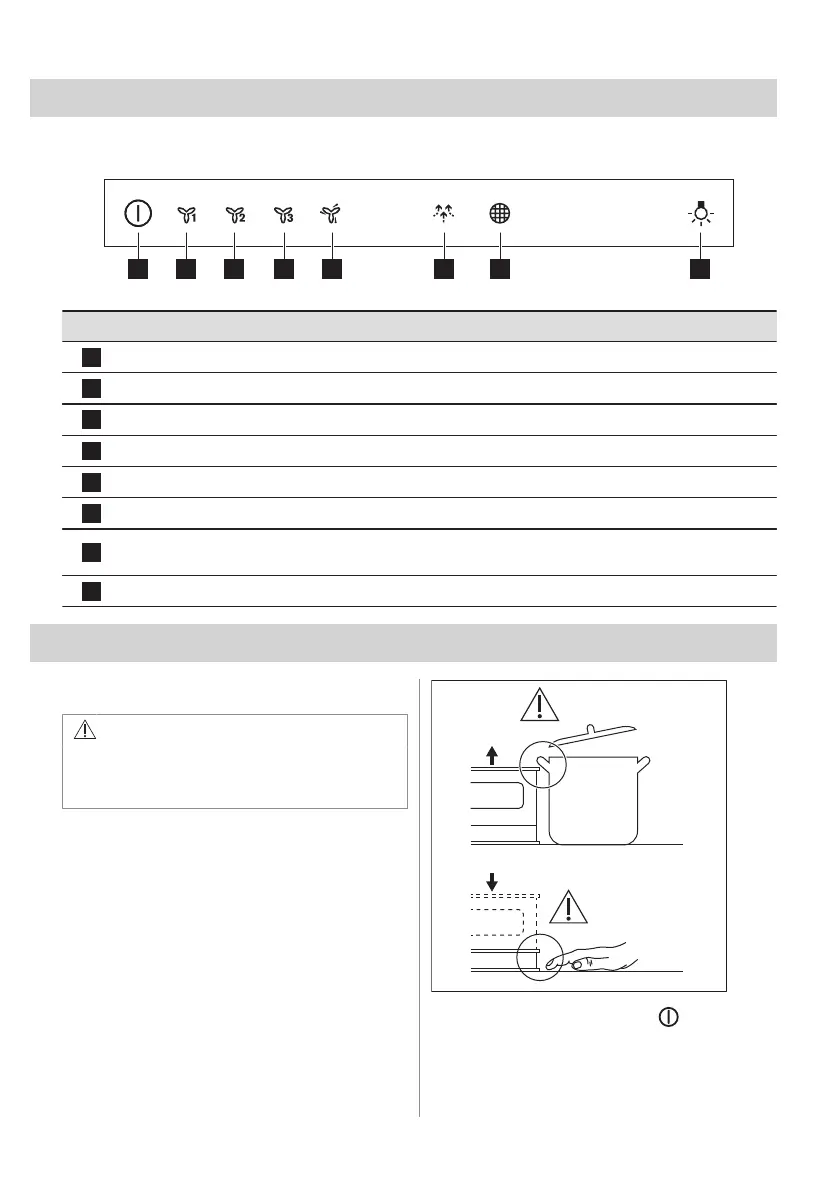Uklj./Isklj., Otvoreno/Zatvoreno Uključuje i isključuje napu.