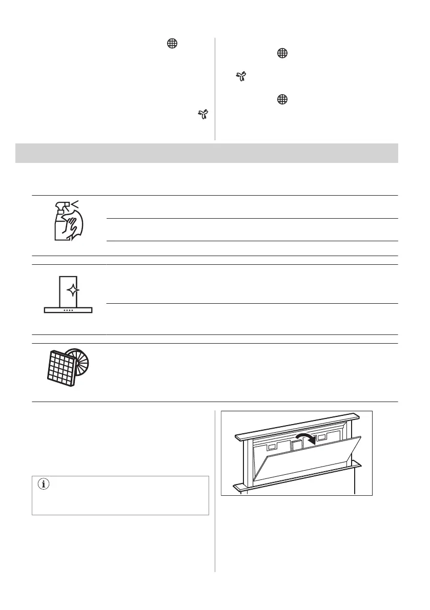 Rengör produkten och fettfiltren en gång i månaden. Rengör insidan och fettfiltren noga