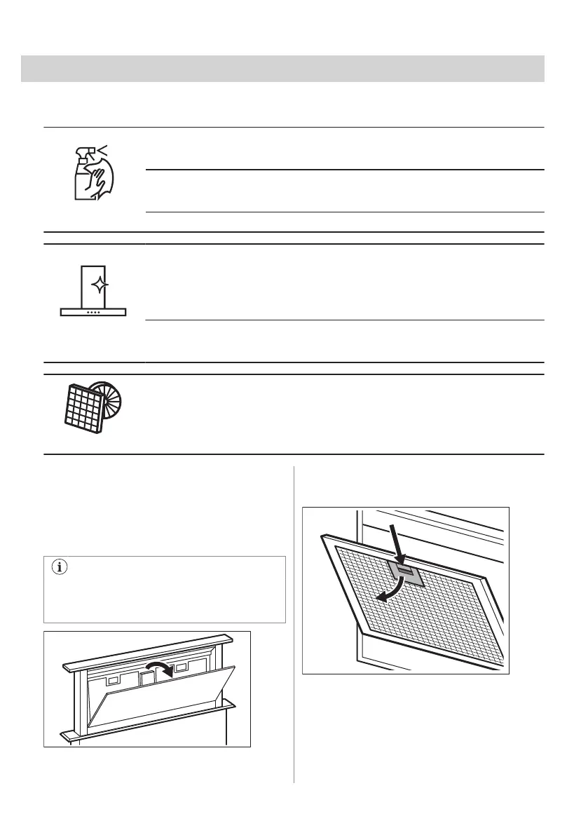 maat van het reinigen van de vetfilter. De houtskoolfilter kan na ongeveer elke twee