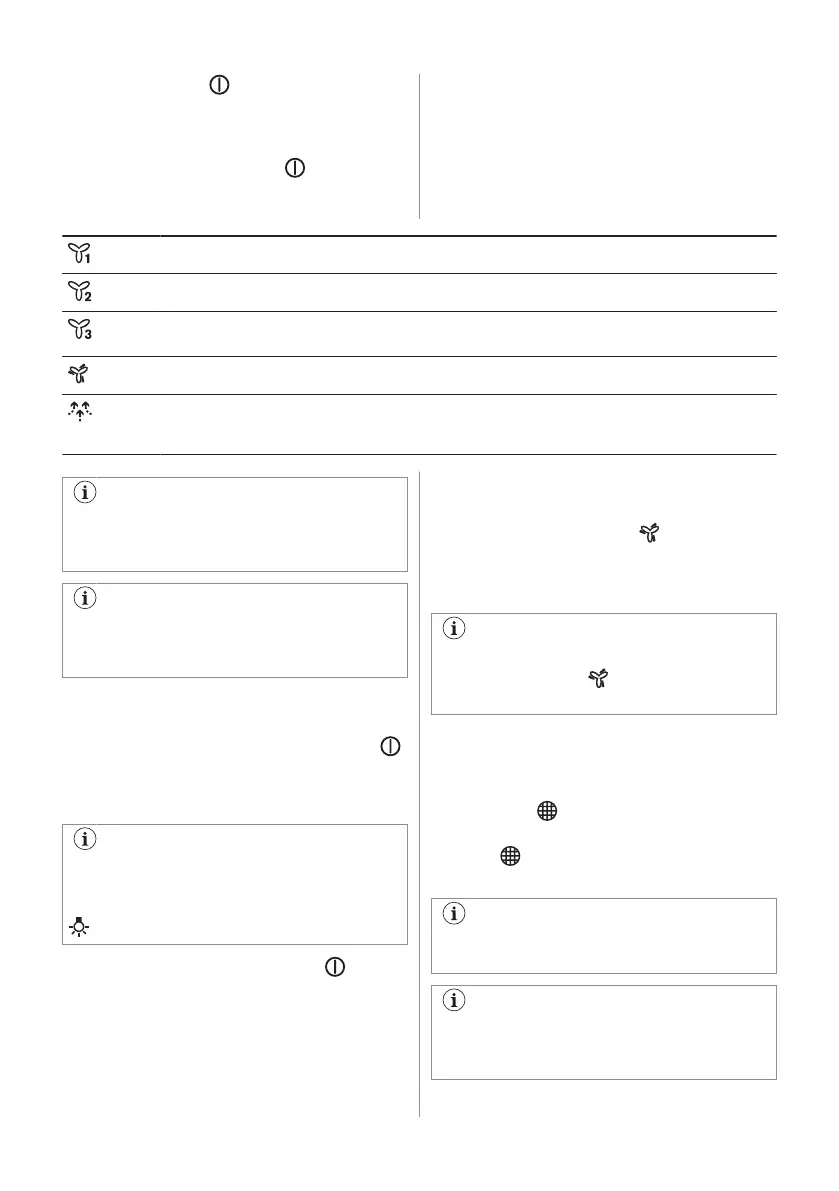 activated by touching the symbol. The function turns off automatically after 60 minutes. Use after