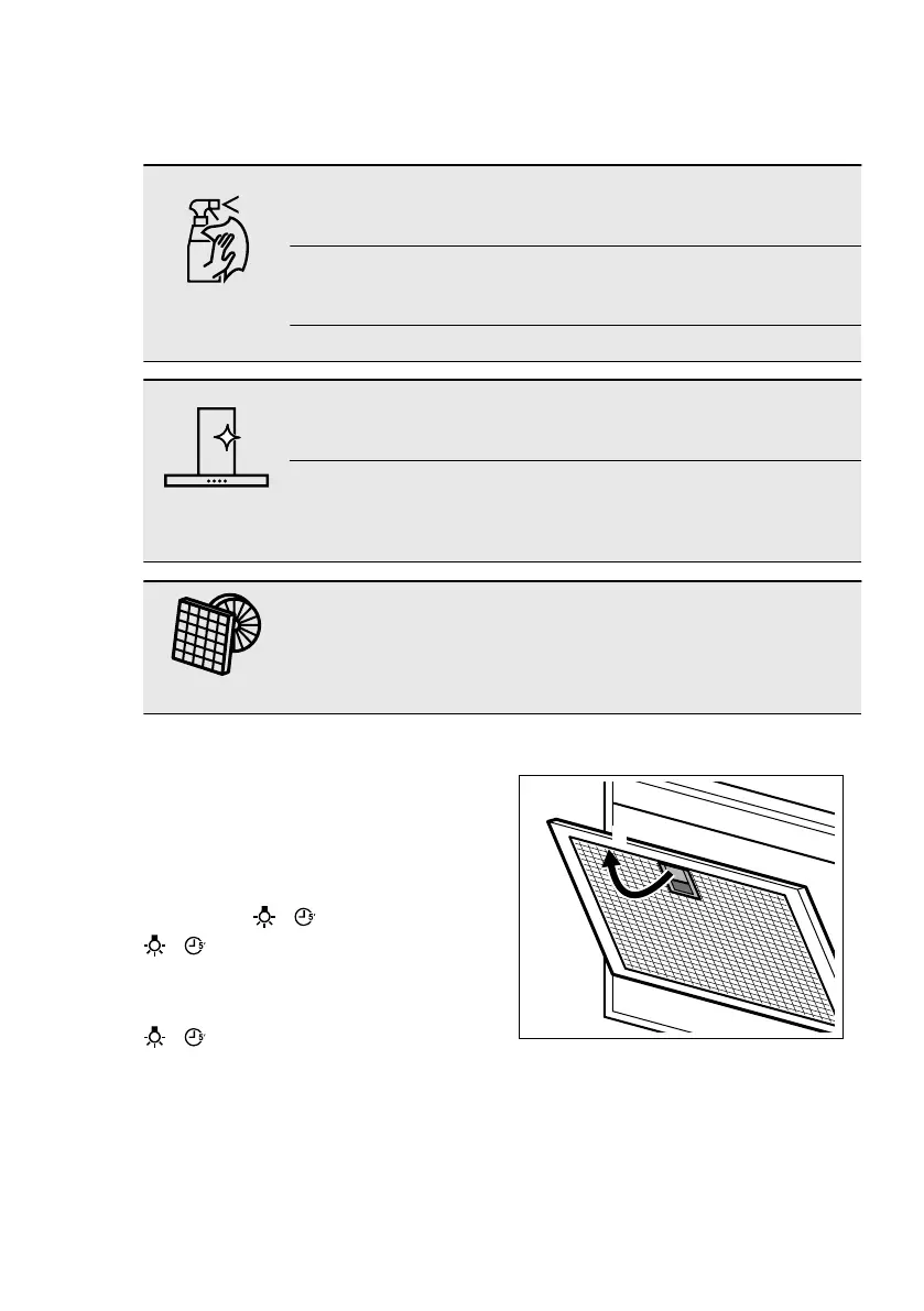 Limpie el aparato y los filtros de grasa cada mes. Limpie cuidadosa-