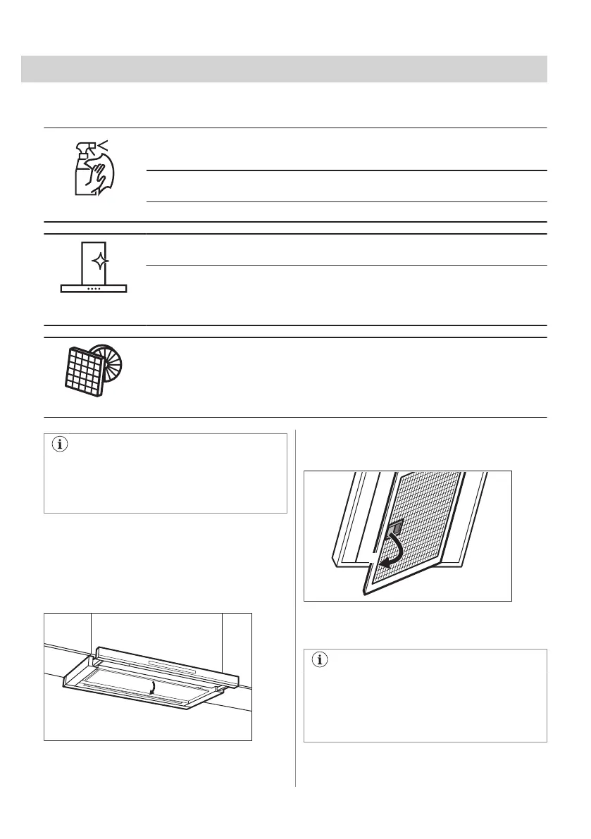 Spotřebič a tukové filtry čistěte každý měsíc. Vnitřek a tukové filtry šetrně očistěte od tu‐