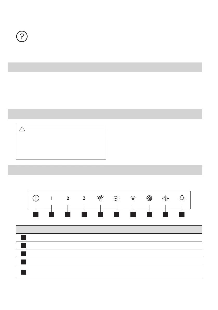 Maximum speed The fan switches to maximum speed level. After 8 minutes the appli‐