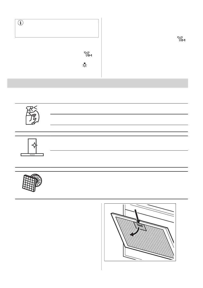 A készüléket és a zsírszűrőket havonta tisztítsa. A készülék belsejét és a zsírszűrőket