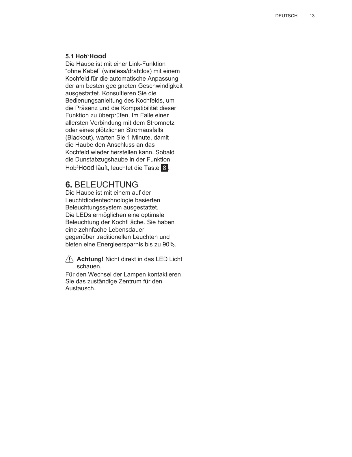 Hood läuft, leuchtet die Taste 8 .