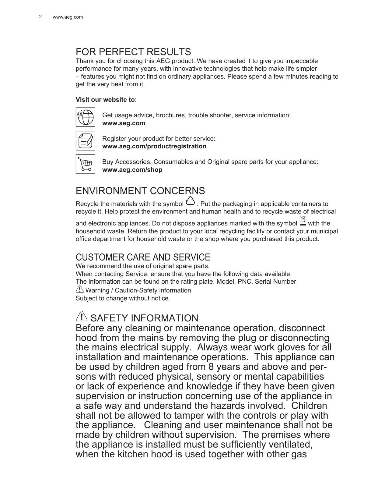 Thank you for choosing this AEG product. We have created it to give you impeccable