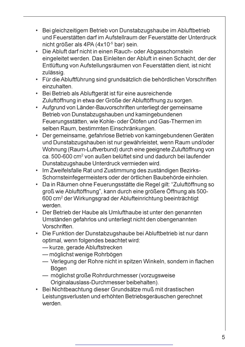 Für die Abluftführung sind grundsätzlich die behördlichen Vorschriften