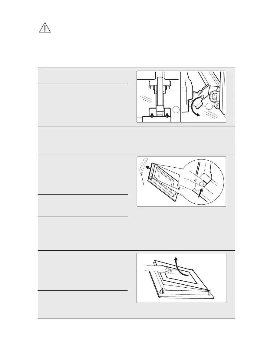 schräg nach oben vom Backofen weg. Legen Sie die Tür mit der Außenseite