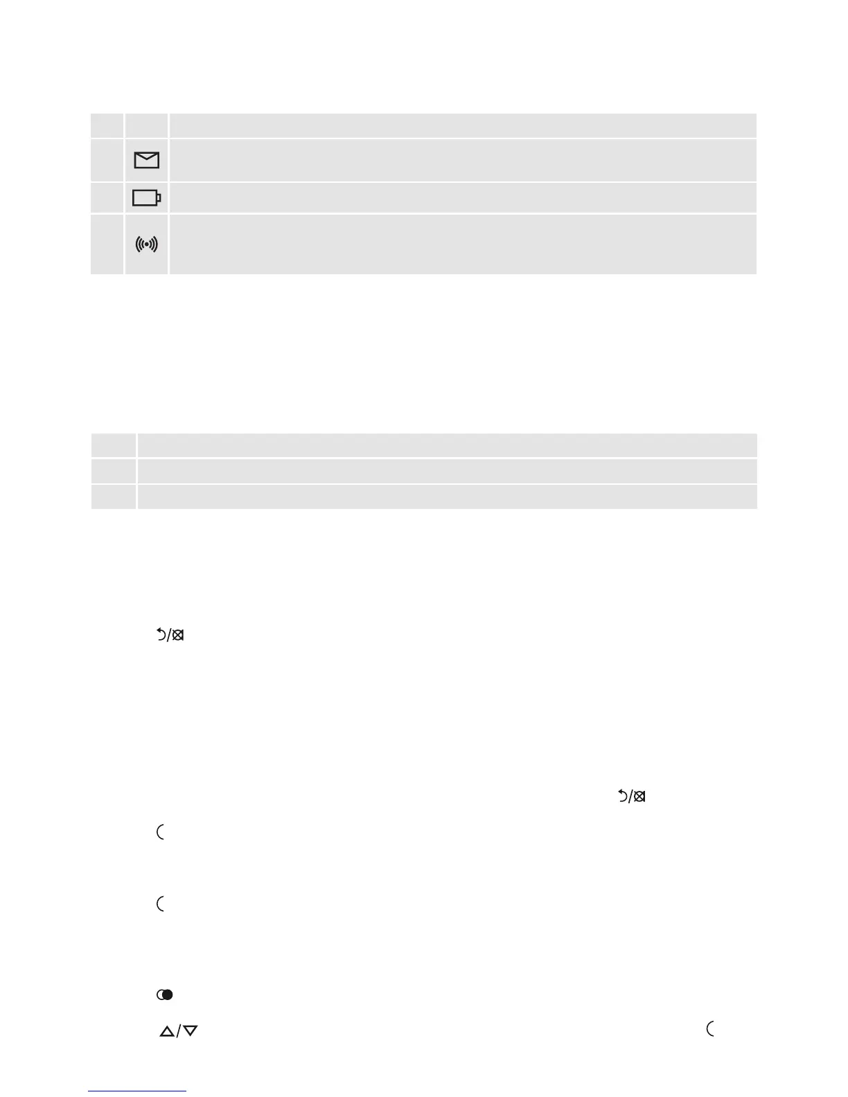 Visas med Röd färg när handenheten är på basenheten för att visa att den laddar.